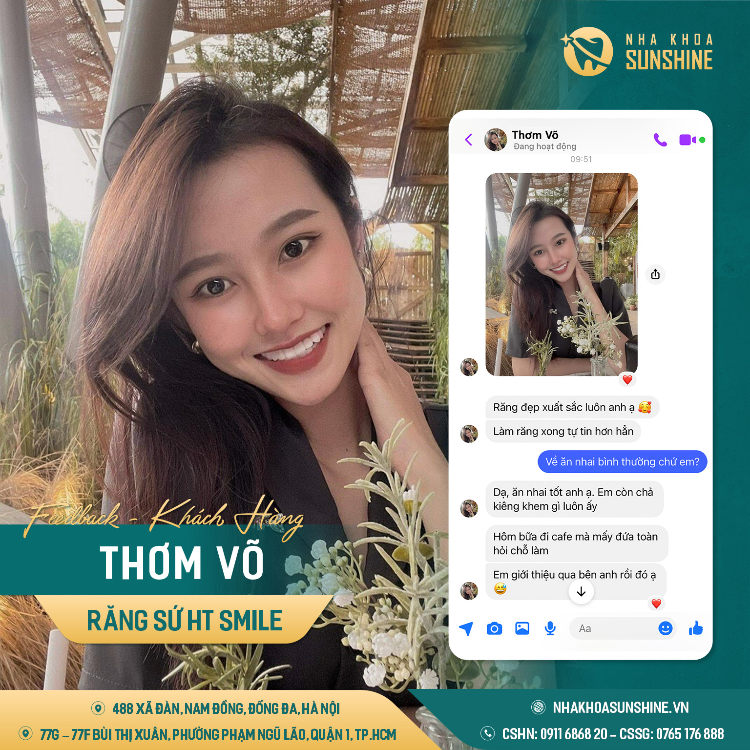 Em cũng bọc sứ ở Sunshine. Rất đẹp luôn mọi người ạ, làm về ai cũng khen quá trời. Đây là quyết định làm đẹp cực kỳ sáng suốt của em luôn. Nên em muốn làm cứ mạnh dạn lên nhé.